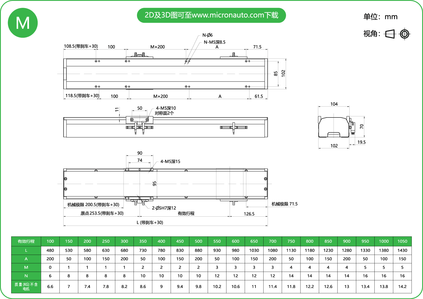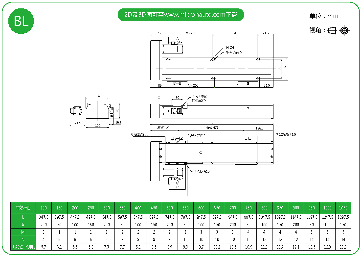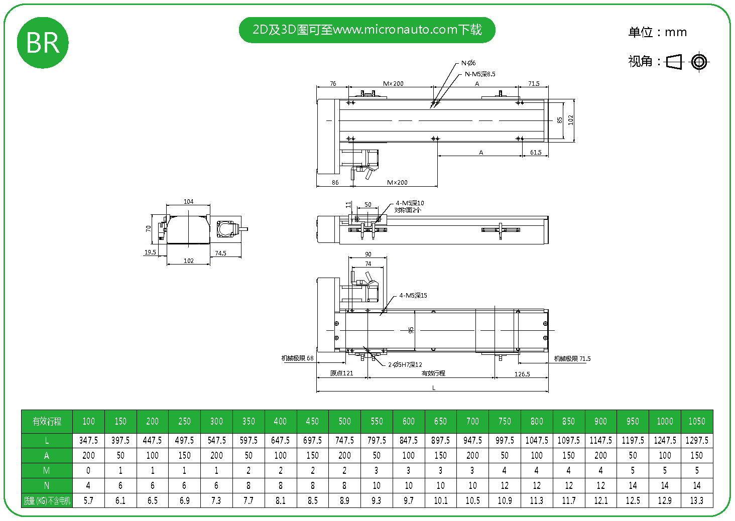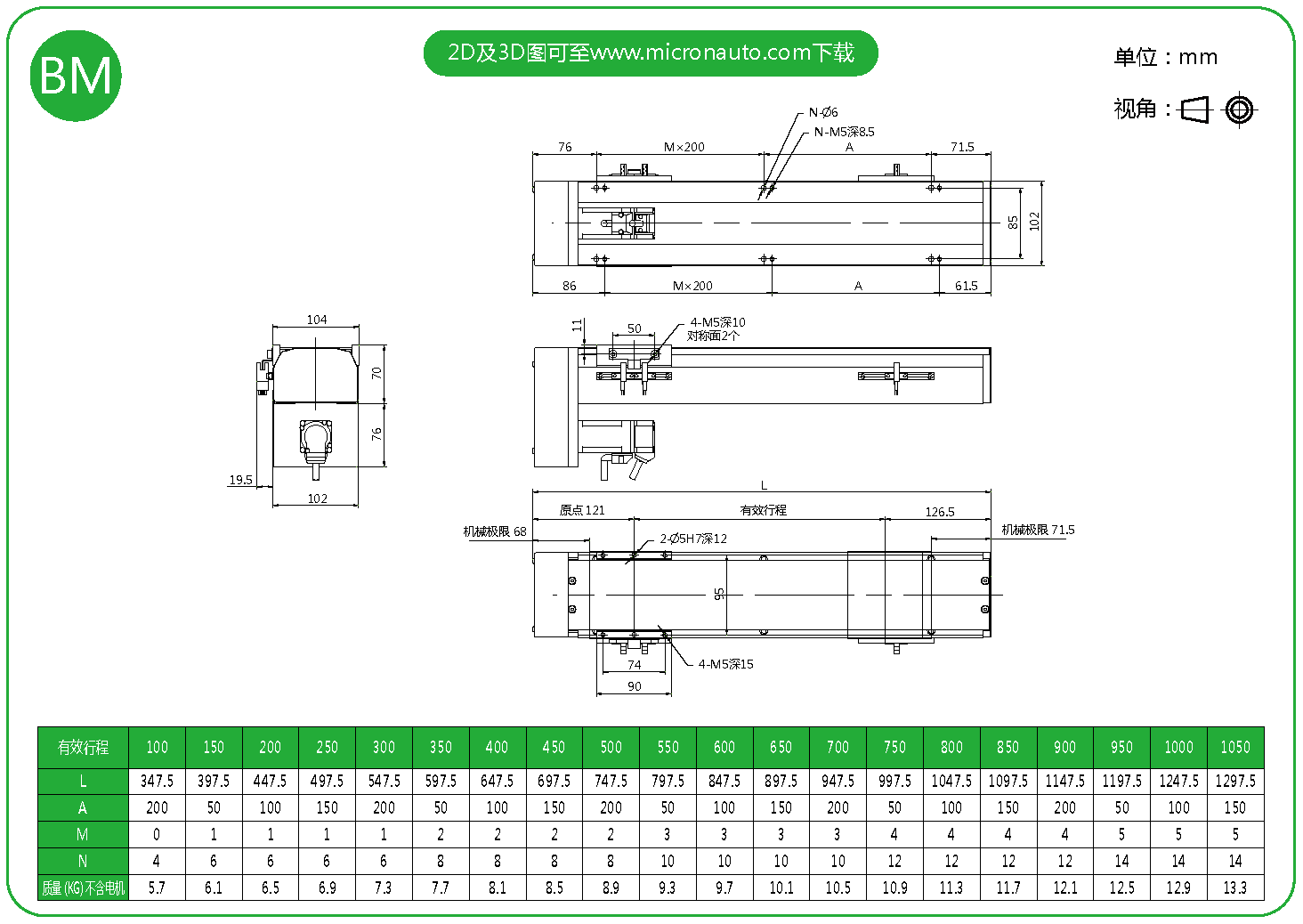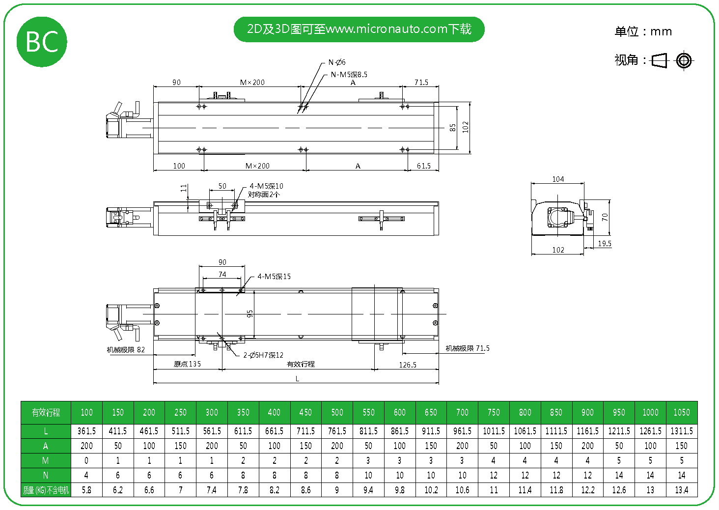 標(biāo)準(zhǔn)有效行程: 100~1050mm(間隔50mm)