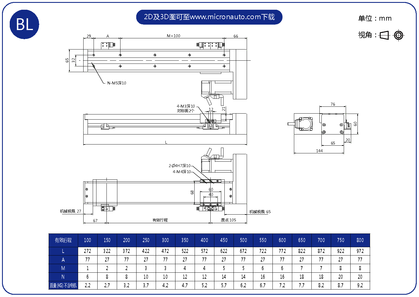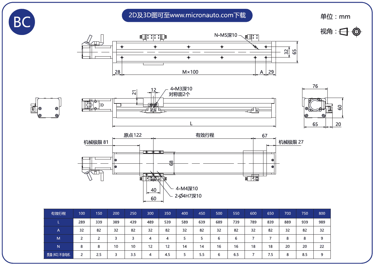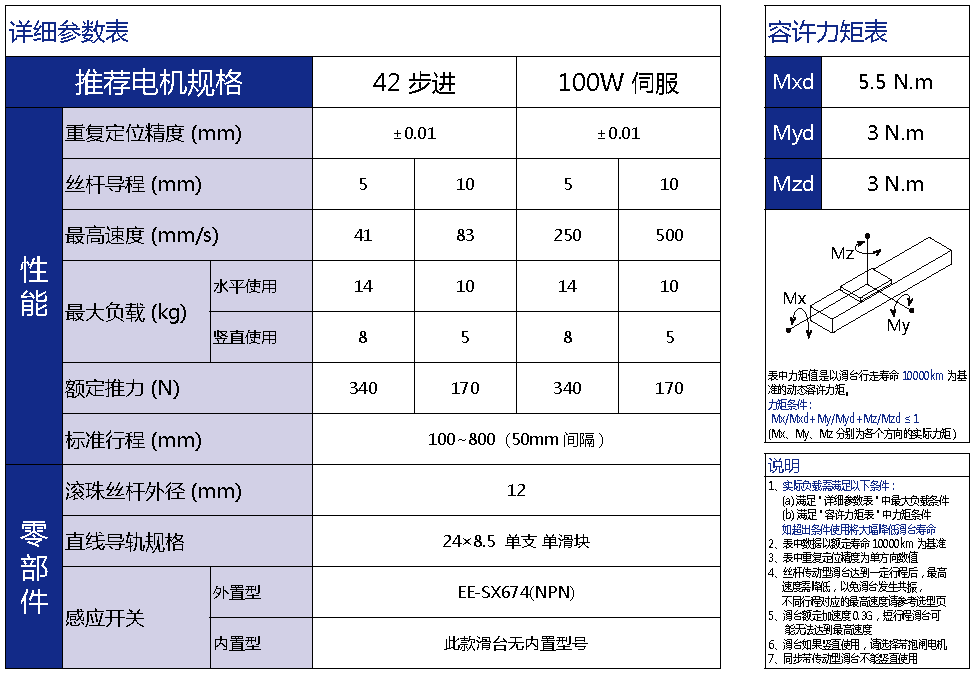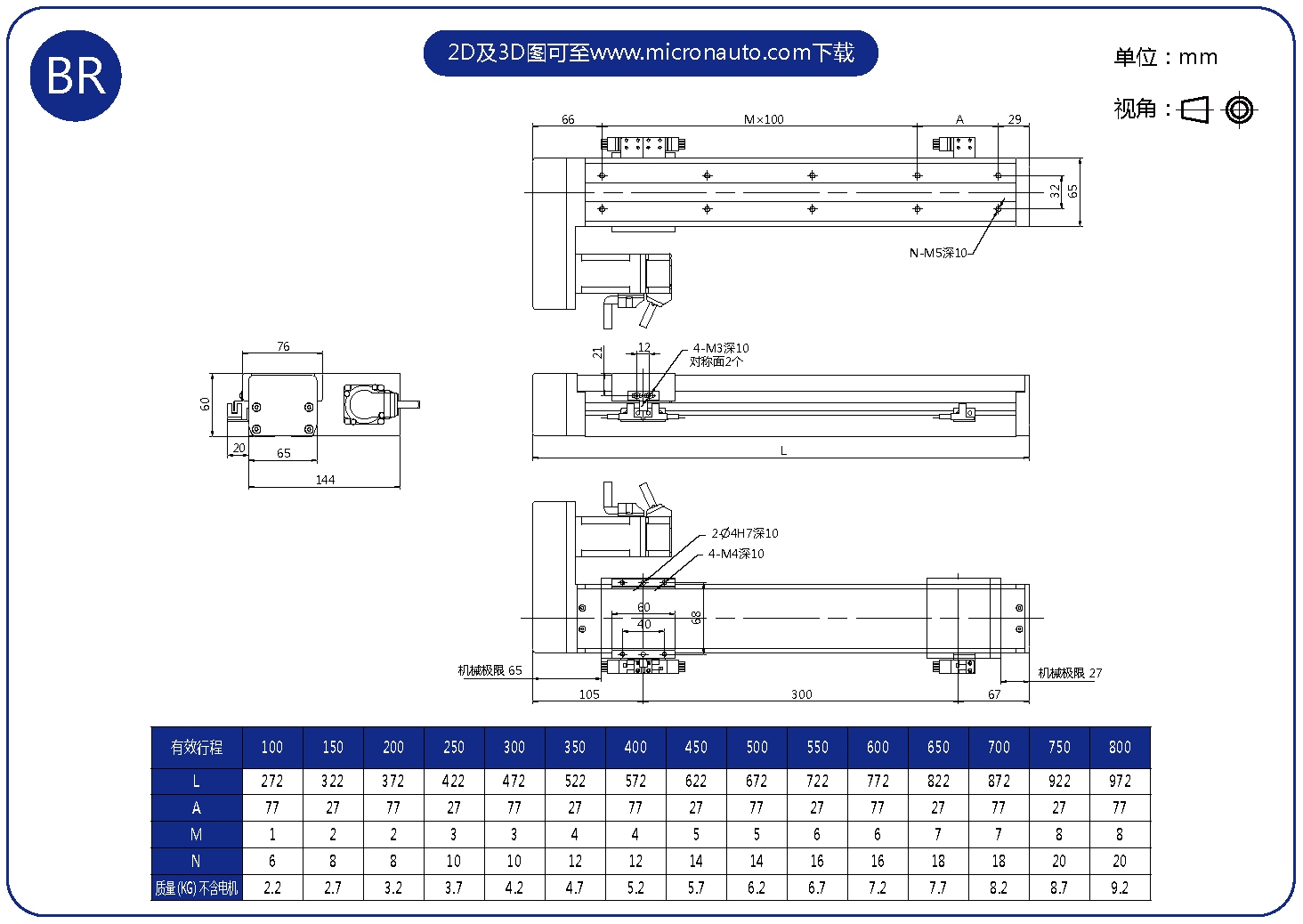 標(biāo)準(zhǔn)有效行程: 100~800mm(間隔50mm)