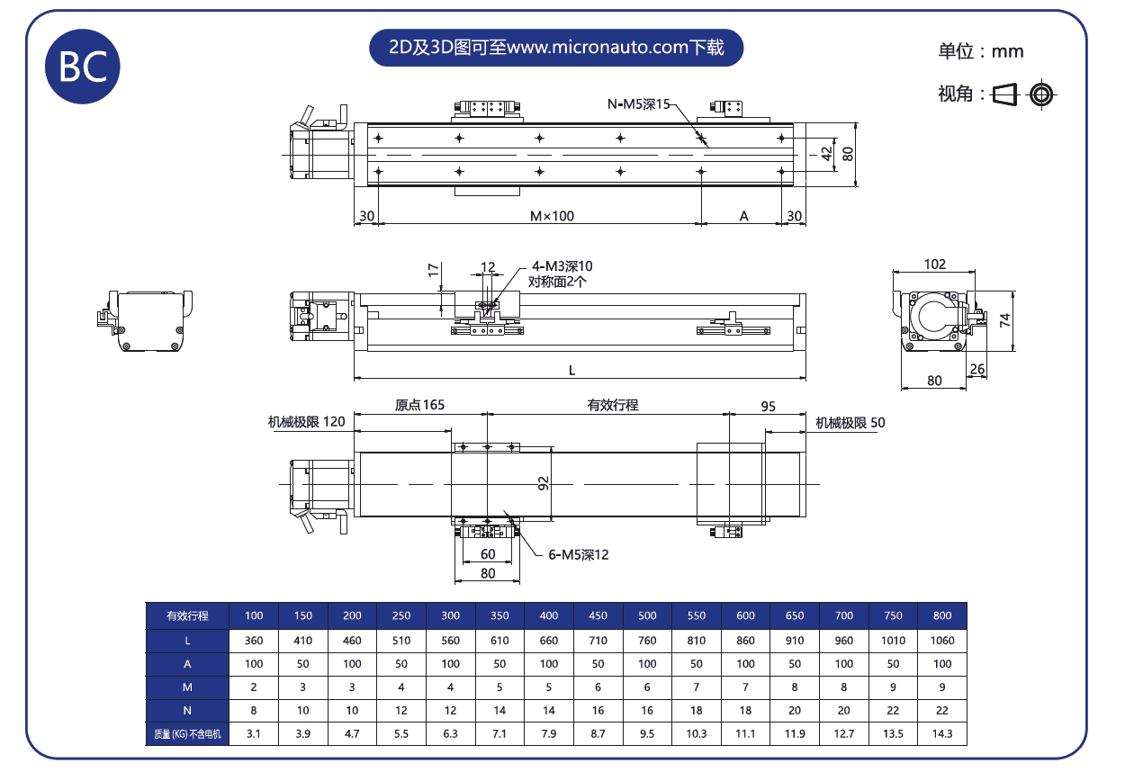 標(biāo)準(zhǔn)有效行程: 100~800mm(間隔50mm)