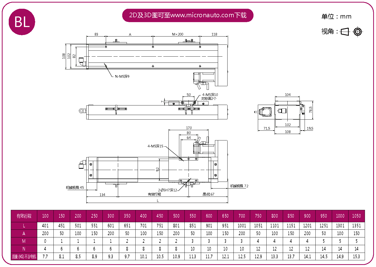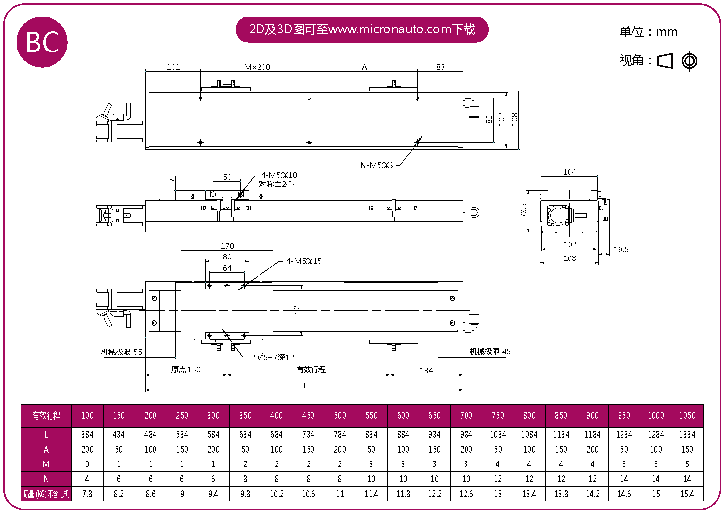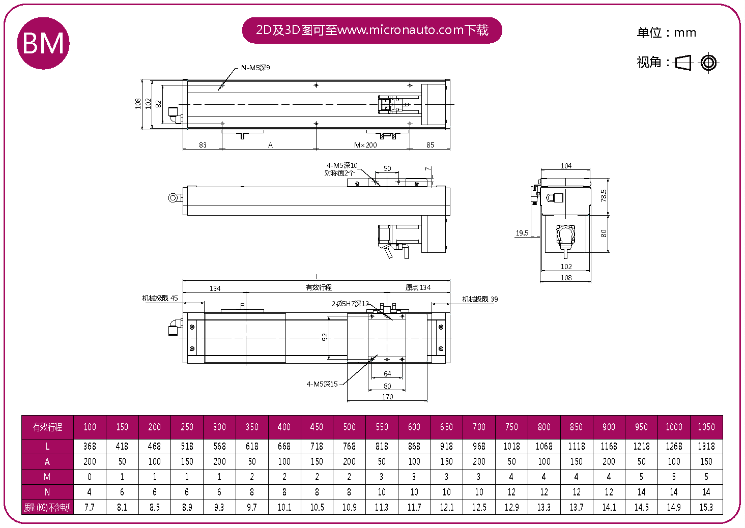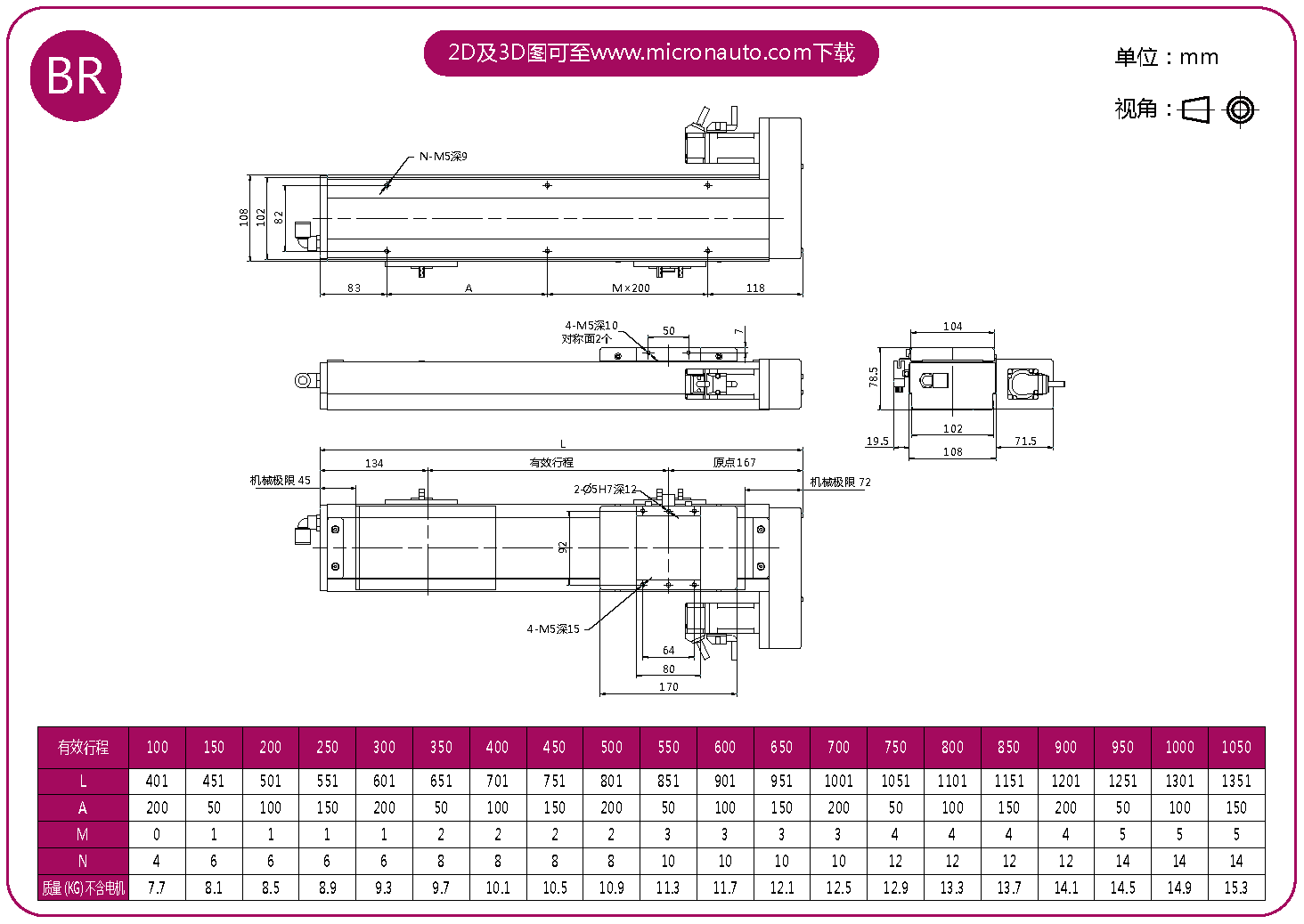 標(biāo)準(zhǔn)有效行程: 100~1050mm(間隔50mm)