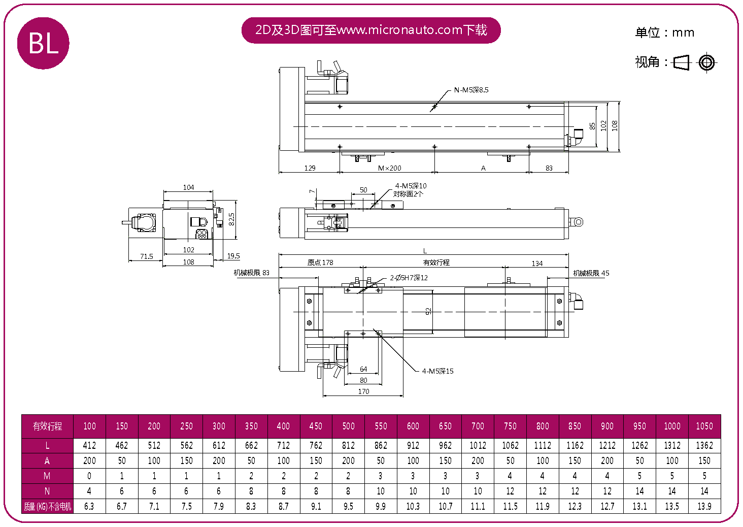 標(biāo)準(zhǔn)有效行程: 100~1050mm(間隔50mm)