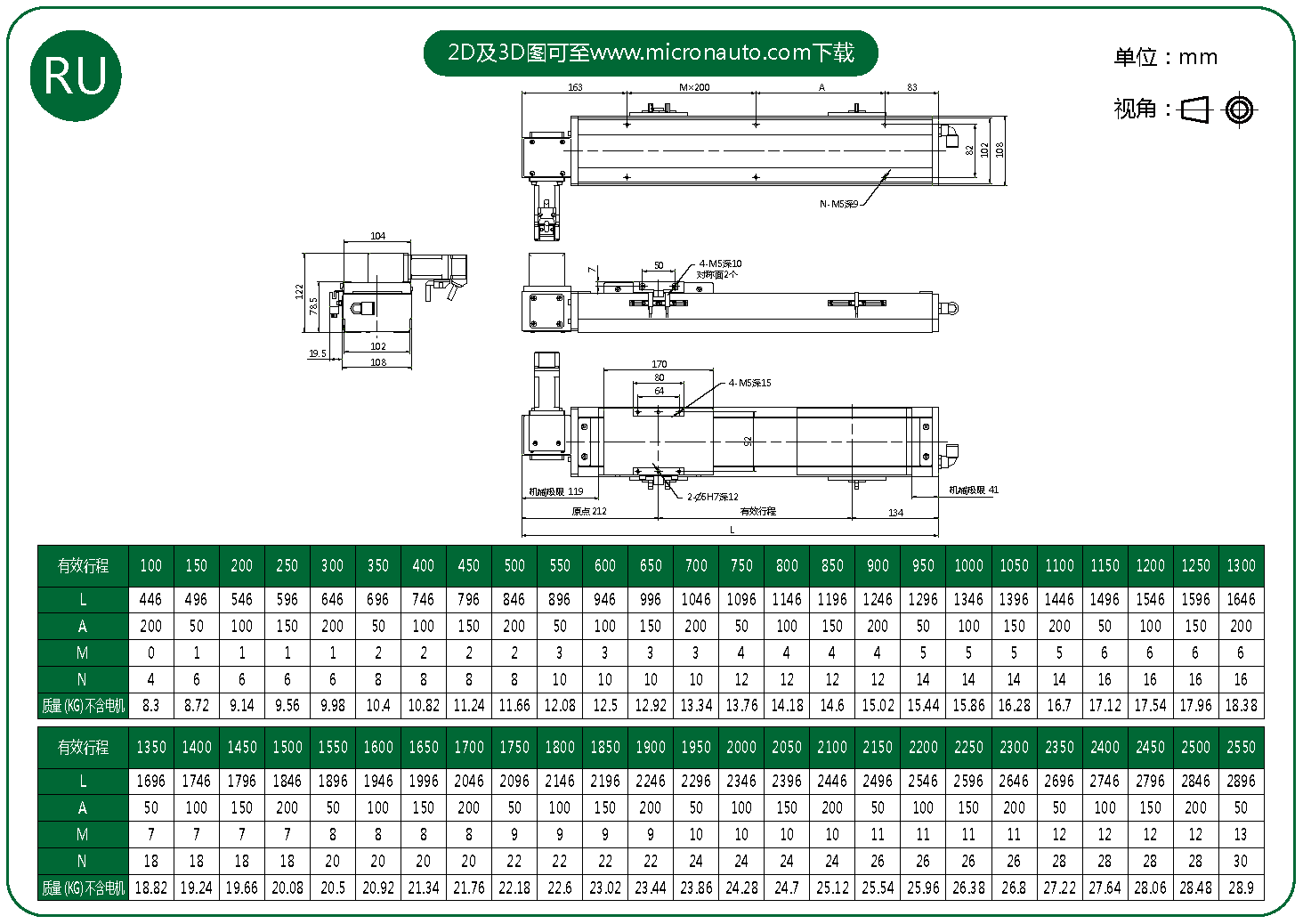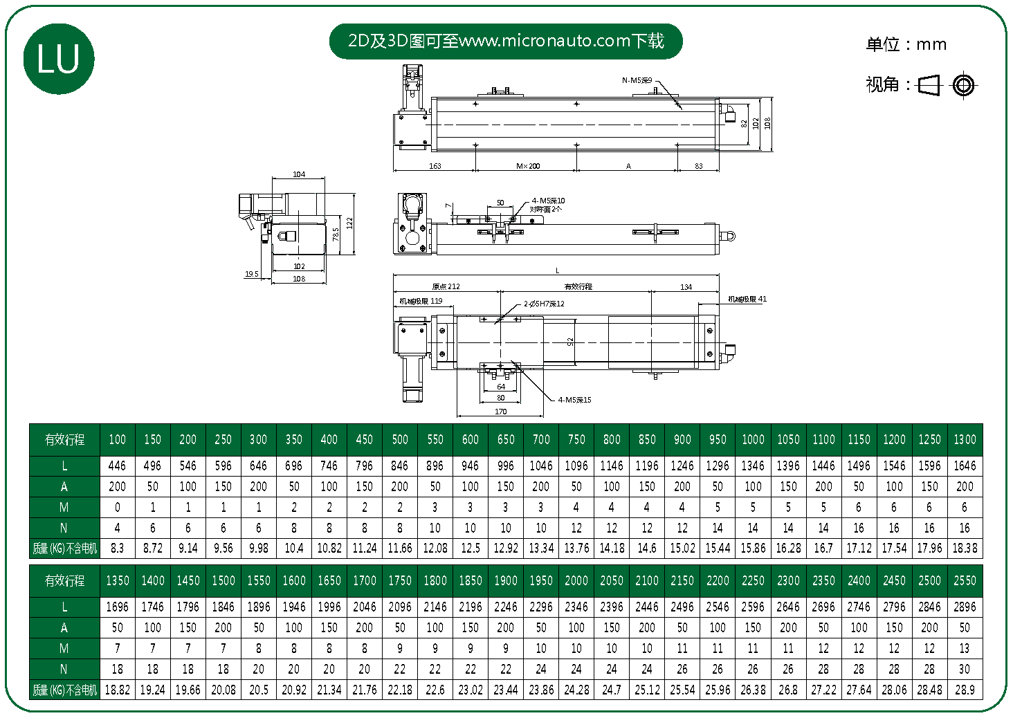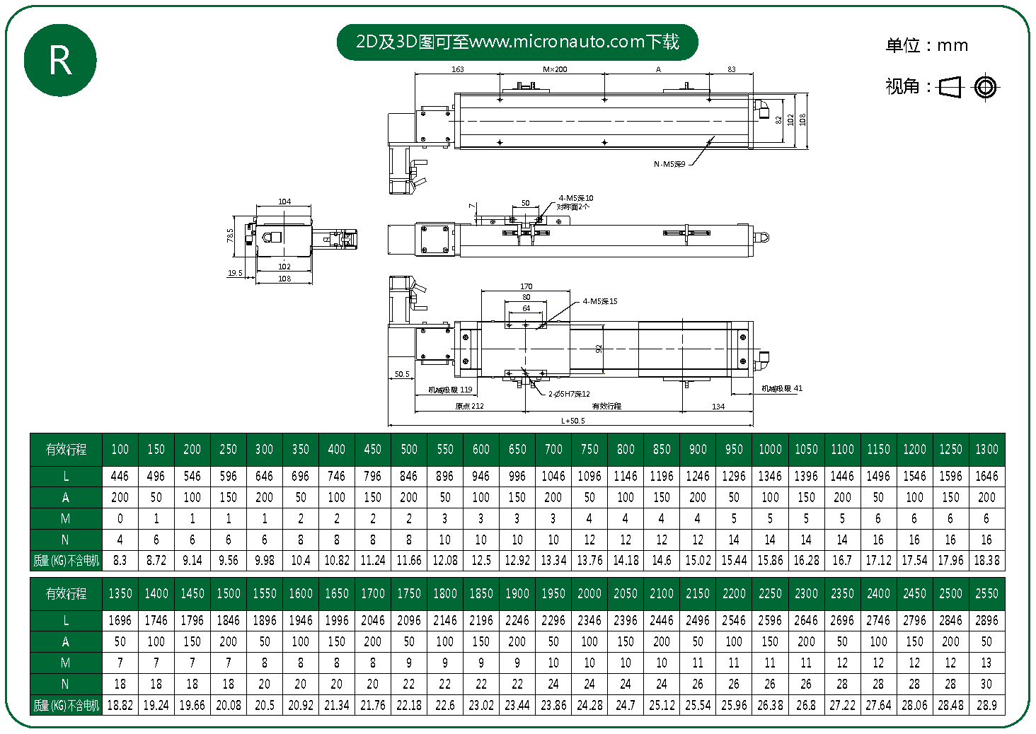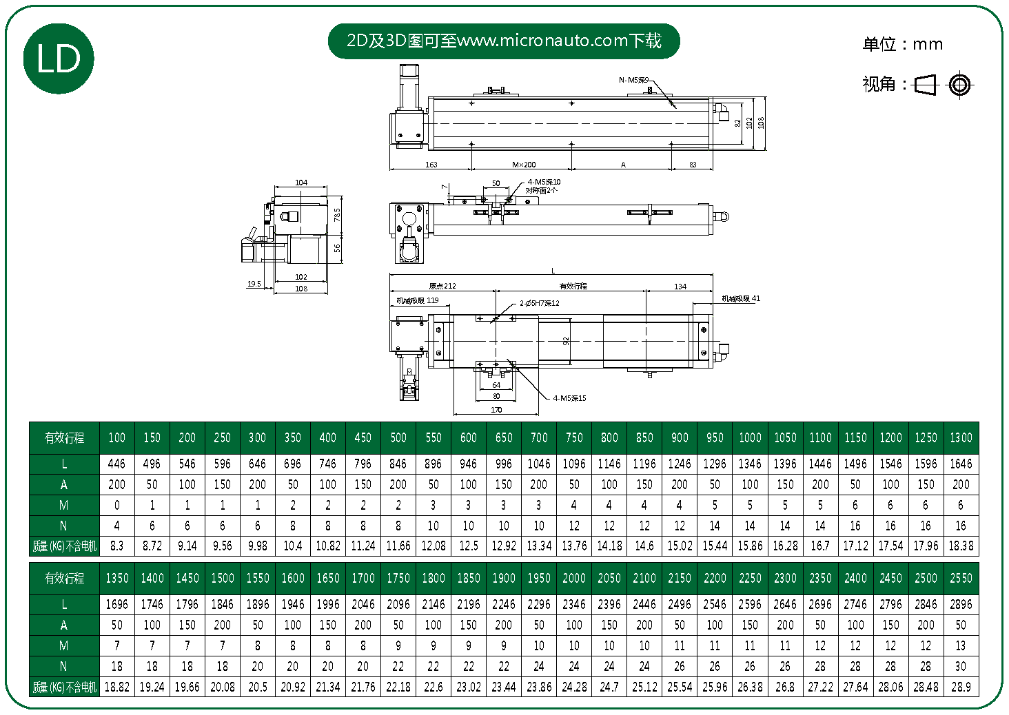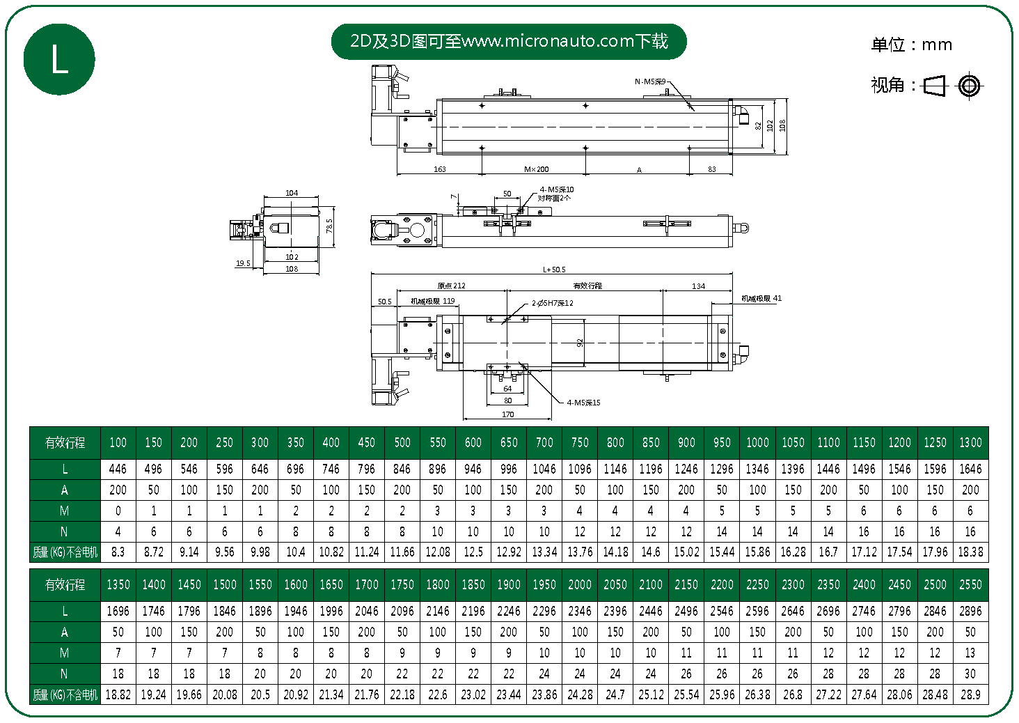 標(biāo)準(zhǔn)有效行程: 100~2550mm(間隔50mm)
