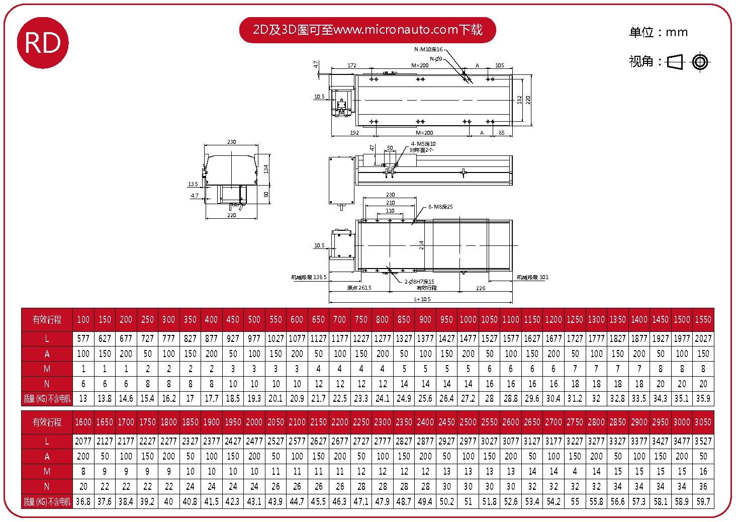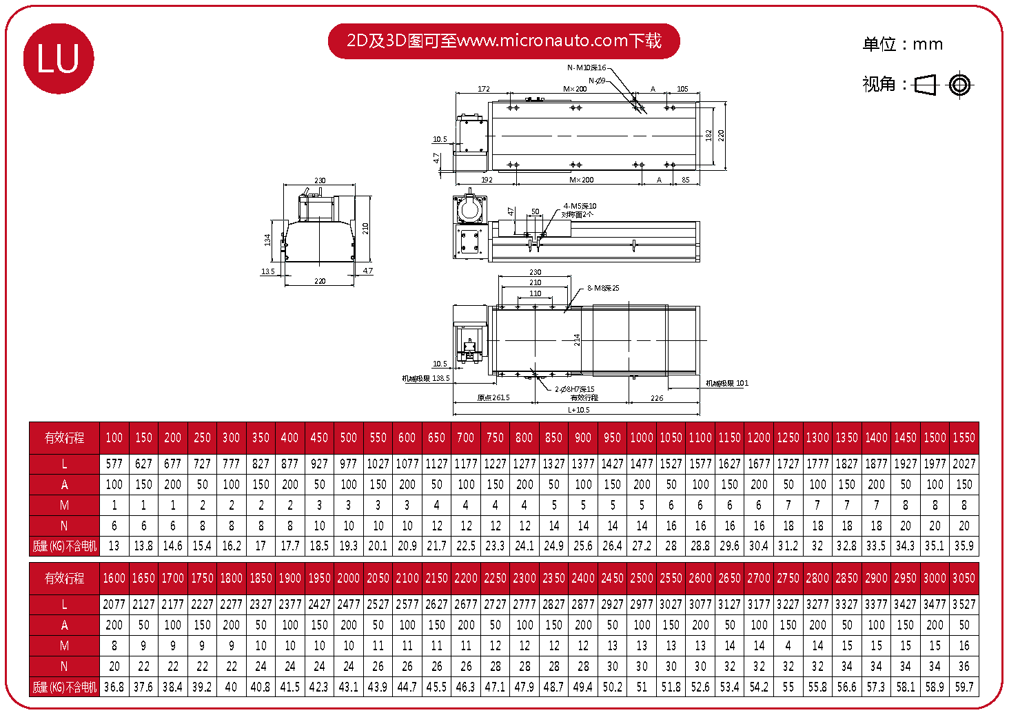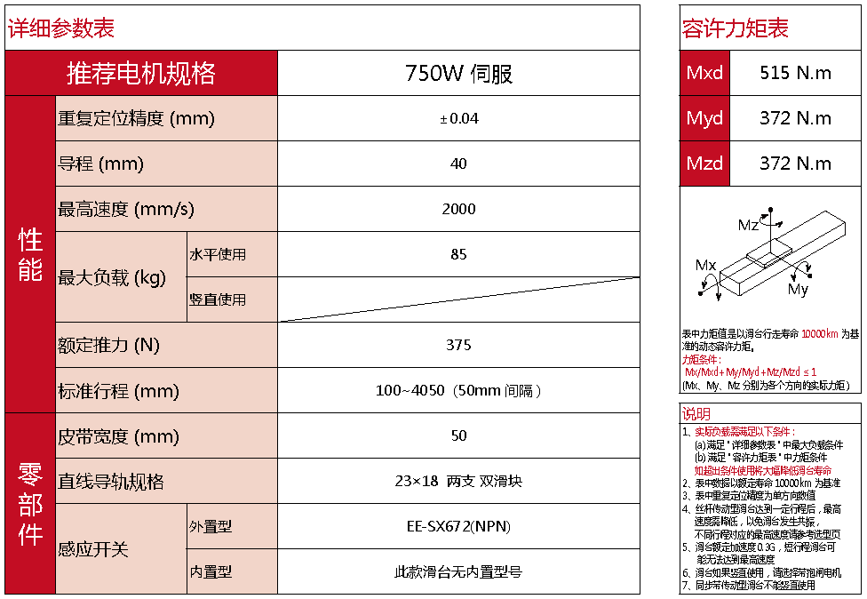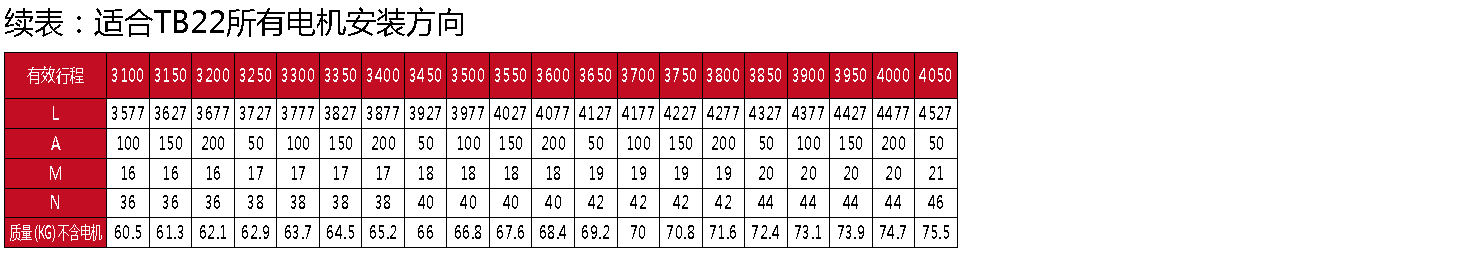標準有效行程: 100~4050mm(間隔50mm)
